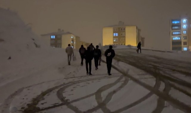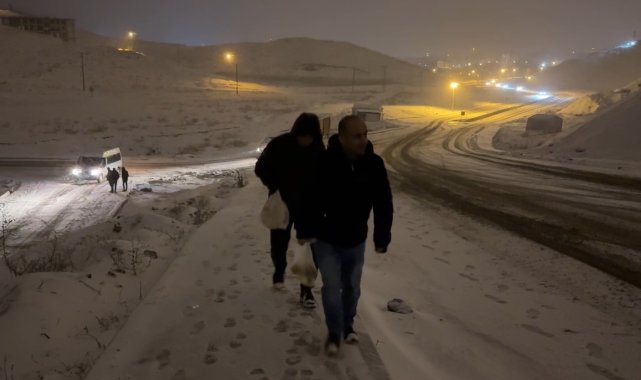 Hakkari'nin Yüksekova ilçesinde kar yağışı ile bastıran fırtına sonrası çok sayıda araç yolda mahsur kalırken, vatandaşlar evlerine yürüyerek gitti.Meteorolojinin uyarılarının ardından ilçede akşam saatlerinde yoğun kar yağışı etkili oldu. Yüksekova ilçesinde seyir halinde olan çok sayıda araç, kar yağışı ve fırtına nedeniyle yolda mahsur kaldı. Yokuşlu yolu çıkamayan bazı araçlar sürücüleri, araçlarını güvenli yerlere park ederek yürüyerek evlerine gitti. Aralıklı kar yağışı devam ederken, ekipler de olumsuz bir durum yaşanmaması için teyakkuzda bekliyor.Öte yandan, Yüksekova'da yoğunlar yağışından dolayı okullara bir günlük ara verildi.