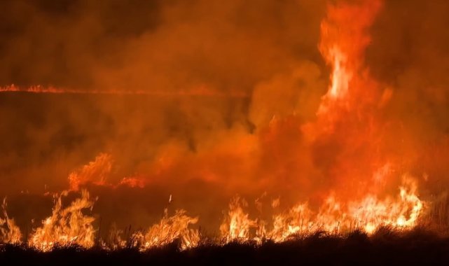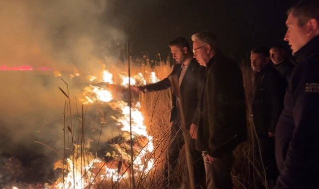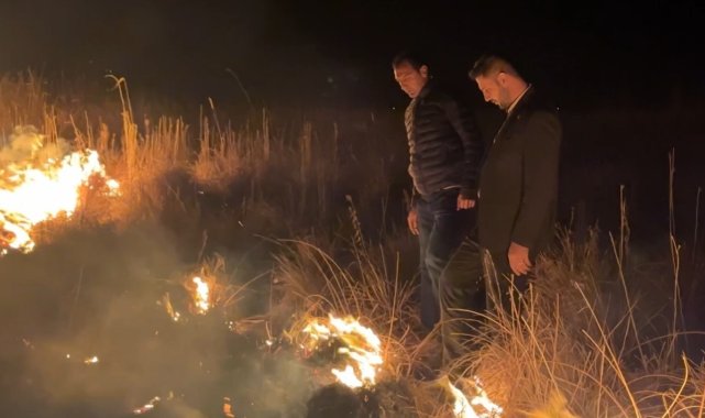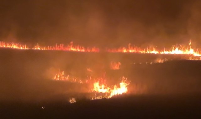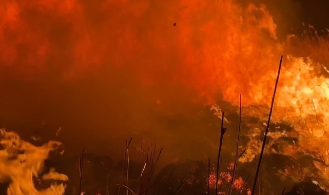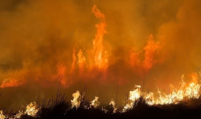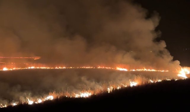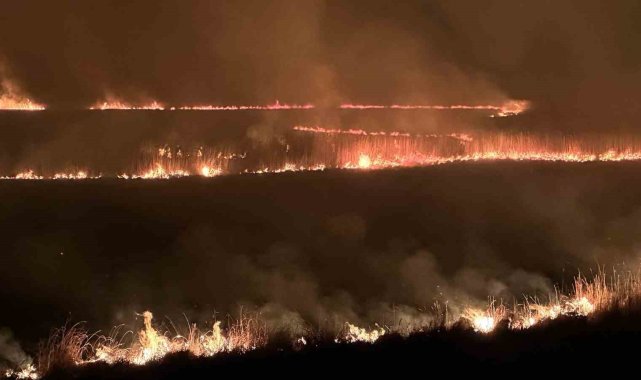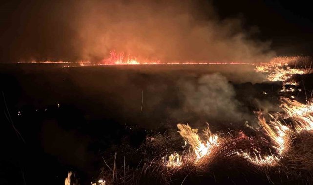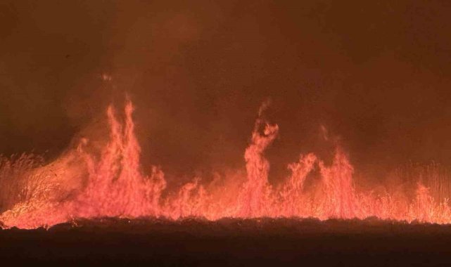 Hakkari'nin Yüksekova ilçesinde yüzlerce kuş türüne ev sahipliği yapan Nehil Sazlığı'nda çıkan yangın yerleşim yerlerini tehdit ederken, ekiplerin söndürme çalışmaları devam ediyor.Nehil Sazlığı'nda henüz belirlenemeyen bir nedenle yangın çıktı. Arazi şartları söndürme çalışmalarını güçleştirirken, itfaiye, jandarma, Doğa Koruma ve Milli Parklar Müdürlüğü ekipleri, bataklık araziye araçların girememesi nedeniyle büyük zorluk yaşıyor. Ekipler, zorlu şartlara rağmen yangına yaya olarak yaklaşmaya çalışarak canla başla mücadelelerini sürdürüyor.Bölgede incelemelerde bulunan Yüksekova Kaymakamı Mustafa Akın ve Yüksekova Ziraat Odası Başkanı Perviz Geçirgen, yetkililerden son duruma ilişkin bilgi aldı. Ziraat Odası Başkanı Geçirgen, "Tüm ekiplerimiz burada müdahale halinde ancak rüzgarın etkisi çok büyük. Yangın hızla ilerliyor ve artık yerleşim alanları tamamen tehlike altında. Acilen havadan müdahale edilmeli" dedi.Sazlıktan yükselen yoğun dumanlar ilçe merkezinden görülürken, söndürme çalışmaları devam ediyor.