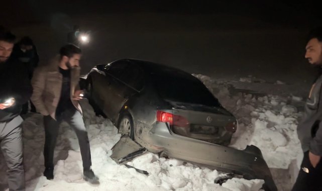 Yüksekova'da otomobil 30 metre savrularak kar yığınına saplandı: 3 yaralı