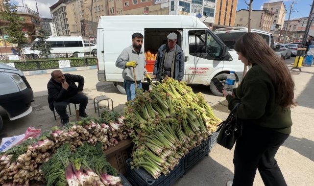 Hakkari ve ilçelerinde baharın müjdeleyicisi olarak bilinen, yüksek rakımlı dağlarda doğal olarak yetişen ve halk arasında "yayla muzu" olarak adlandırılan uçkun (revas), pazar tezgahlarındaki yerini alırken, sezonun ilk ürünleri ise destesi 150 liradan satılıyor.