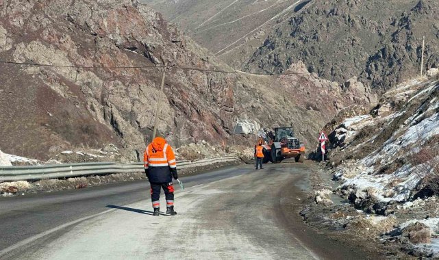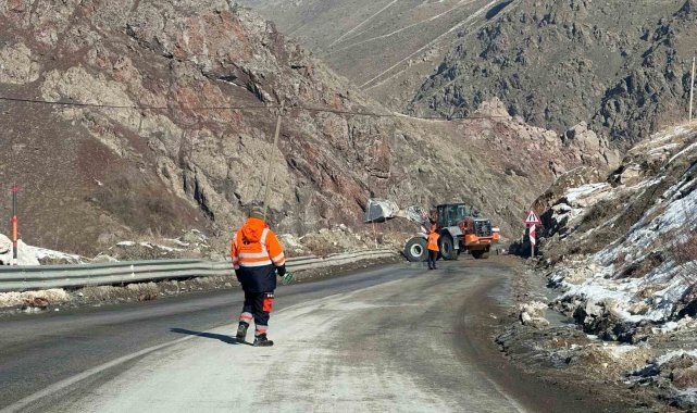 Yüksekova-Van kara yoluna düşen taşlar temizlendi