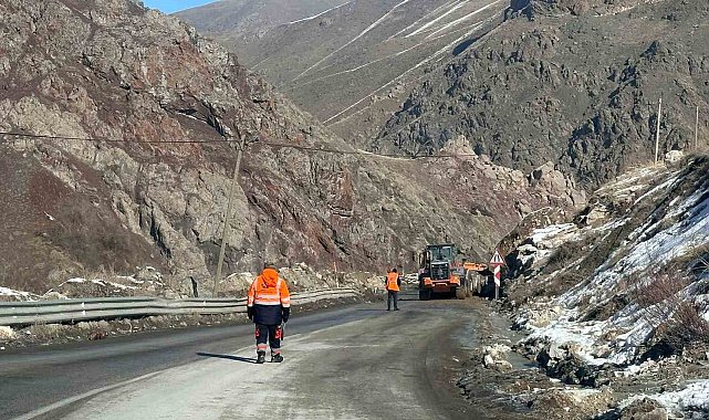 Yüksekova-Van kara yolu üzerindeki Yeni Köprü bölgesinde dağdan düşen kaya parçaları temizlendi.