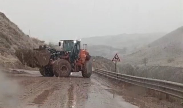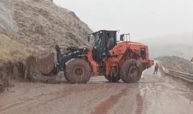 Yüksekova-Van kara yolu Çöplük mevkiinde şiddetli yağışların ardından heyelan meydana geldi.
