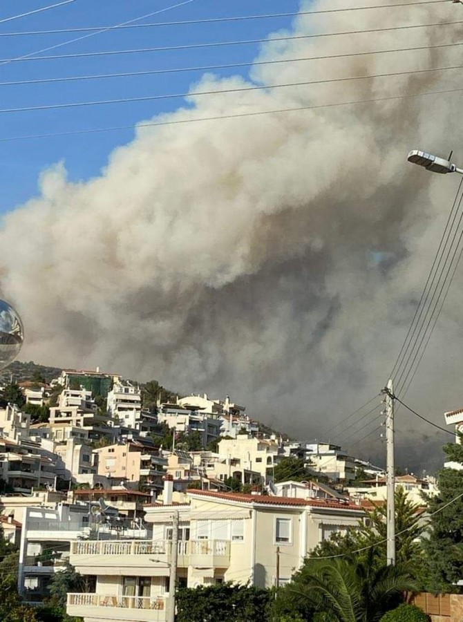 Yunanistan'ın başkenti Atina'ya 20 kilometre uzaklıktaki Glyfada ve Voula kentleri arasındaki ormanlık alanda bugün öğle saatlerinde başlayan yangın şiddetli rüzgarın etkisi ile hızla yayıldı.