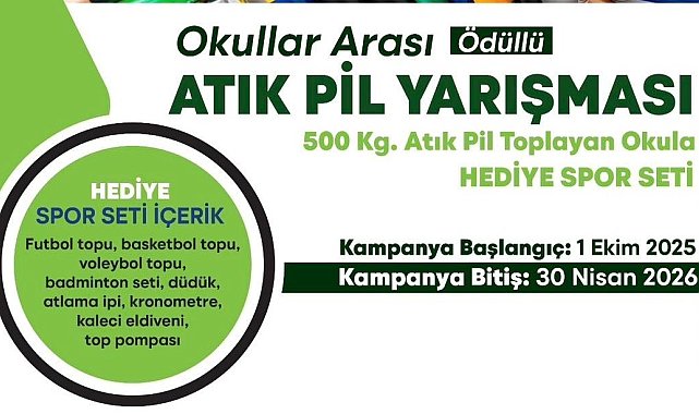 Yunusemre Belediyesi ile Taşınabilir Pil Üreticileri ve İthalatçıları Derneği İktisadi İşletmesi (TAP) işbirliğiyle çevre bilincini artırmak ve genç nesillerde sürdürülebilir gelecek farkındalığı oluşturmak amacıyla bu yıl da "Okullararası Ödüllü Atık Pil Toplama Yarışması" düzenleniyor.Yunusemre ilçesinde eğitim veren anaokulu, ilkokul, ortaokul ve liseler arasında 1 Ekim'de başlayan ve 30 Nisan 2026 tarihine kadar sürecek yarışma kapsamında öğrenciler, topladıkları atık pillerle hem çevrenin korunmasına katkı sağlıyor hem de ödül kazanma şansı elde ediyor.Yarışma sonunda toplamda 500 kilogram ve üzeri atık pil toplamayı başaran okullar, spor seti ödülü kazanacak. Bu setler; futbol, basketbol ve voleybol topları, badminton seti, düdük, atlama ipi, kaleci eldiveni gibi spor malzemelerinden oluşacak.Yunusemre Belediyesi yetkilileri, kampanyayla birlikte israfın önlenmesi, kaynakların verimli kullanılması, atık miktarının azaltılması ve geri dönüşüm bilincinin yaygınlaştırılmasının hedeflendiğini belirtti.