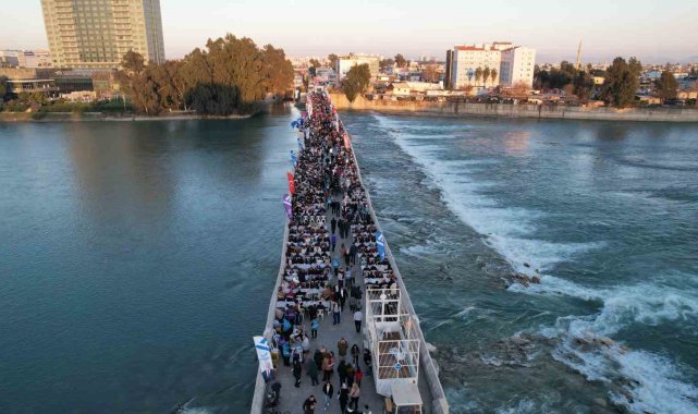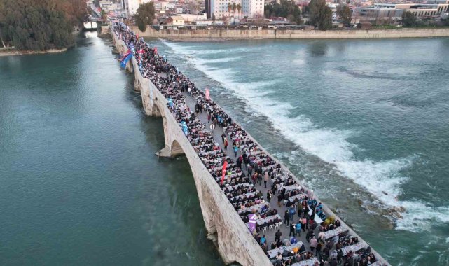 Adana'da Ramazan ayı dolayısıyla Yüreğir Belediyesi tarafından tarihi Taşköprü'de halk iftarı düzenlendi. Tarihi dokusuyla kentin simgelerinden olan Taşköprü üzerinde kurulan uzun sofralarda yüzlerce Adanalı aynı anda orucunu açtı.