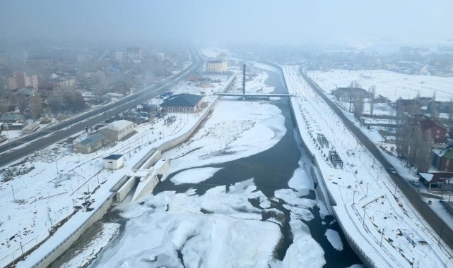 Ağrı'da etkili olan dondurucu soğuklardan sonra yüzeyi tamamen buzla kaplanan Murat Nehri havadan görüntülendi.Bu yıl kar yağışının olmamasına rağmen dondurucu soğukların etkili olduğu kentte, hava sıcaklığının sıfırın altına düşmesiyle her yer buzla kaplandı. Kent merkezinde bulunan Murat Nehri'nin yüzeyi tamamen buzla kaplandı.Kışın en sert geçtiği illerden biri olan Ağrı'da bir süredir etkisini gösteren soğuk hava nedeniyle kentte hayat durma noktasına geldi. Sis ve buzla kaplanan Murat Nehri dronla görüntülendi. Ortaya eşsiz bir manzara çıktı.