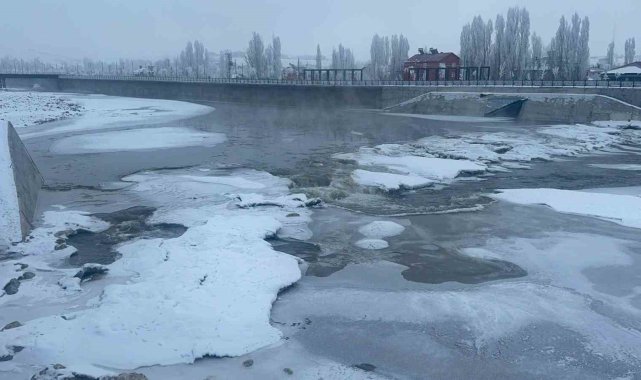 Yüzeyi buzla kaplanan Murat Nehri havadan görüntülendi