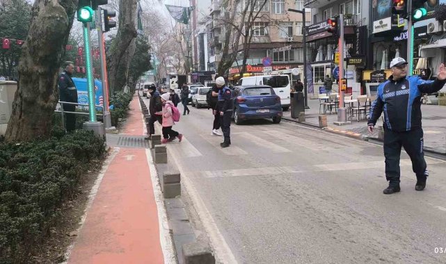 Kocaeli'de Büyükşehir Belediyesi Zabıta Dairesi Başkanlığına bağlı ekipler, öğrencilerin güvenli şekilde okullarına gidip gelmesini sağlamak amacıyla okul önlerinde güvenlik tedbirini yeni dönemin ilk gününde de sürdürdü. Yarıyıl tatilinden dönen öğrenciler ders başı yaparken, Kocaeli Büyükşehir Belediyesine bağlı zabıta ekipleri de okul önlerinde trafiği yöneterek güvenlik tedbirleri aldı. Okullarına yürüyerek gidip gelen öğrencilerin, özellikle karşıdan karşıya geçerken karşılaşabileceği risk faktörlerini ortadan kaldırmak için okul önlerinde uygulamalarını sıklaştıran ekipler, trafiği aksatmadan öğrencilerin okullarına ulaşmalarına yardımcı oldu.'Velilerin içi rahat'Kocaeli Büyükşehir Belediyesi zabıta ekipleri, eğitimin başlangıç saatlerinde olduğu gibi bitiş saatlerinde de minik öğrencilerin okul önlerindeki yaya geçitlerini güvenli bir şekilde kullanmalarını sağlıyor. Özellikle karşıya geçişlerde dikkatli olan ekipler, öğrencilerin daha güvenli bir şekilde evlerine ulaşımlarını sağlıyor. Uygulama sayesinde veliler rahat bir nefes alıyor.