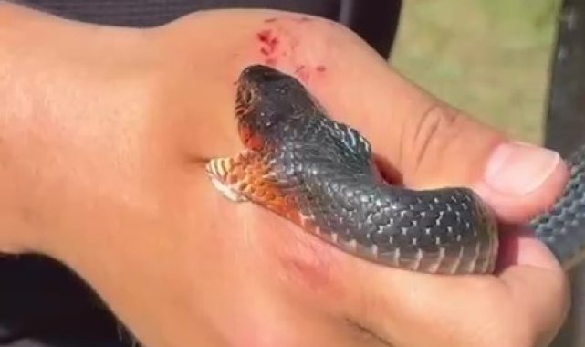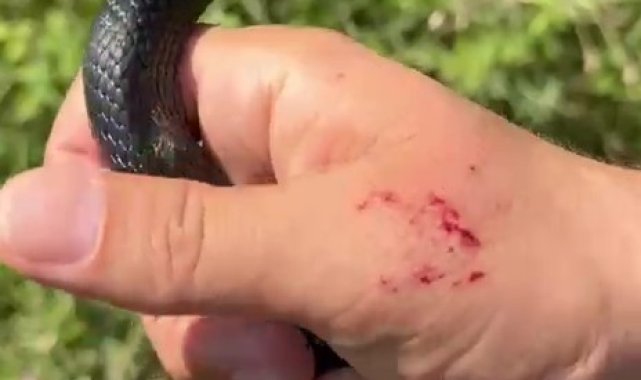 "Zararsız, öldürmeyin" dediği 1 buçuk metrelik yılan bir anda elini ısırdı