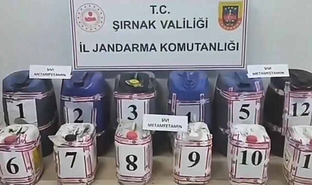 İçişleri Bakanı Ali Yerlikaya, Şırnak'ta düzenlenen "Narkokapan-11" operasyonu ile 375 litre sıvı metamfetamin ele geçirildiğini ve 2 şüphelinin yakalandığını bildirdi.