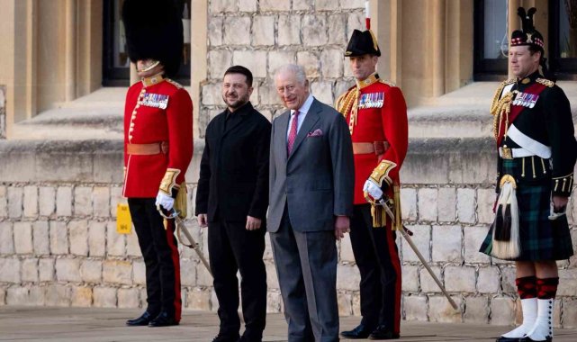 Ukrayna Devlet Başkanı Vladimir Zelenskiy, Gönüllüler Koalisyonu toplantısına katılmak üzere İngiltere'de Windsor Kalesi'nde İngiltere Kralı III. Charles tarafından resmi törenle karşılandı.Ukrayna Devlet Başkanı Vladimir Zelenskiy, Gönüllüler Koalisyonu toplantısına katılmak üzere İngiltere'ye geldi. Zelenskiy, Londra temaslarına ikili görüşmelerle başladı. Ukrayna Devlet Başkanı Zelenskiy, Windsor Kalesi'nde İngiltere Kralı III. Charles tarafından resmi törenle karşılandı. Windsor Kalesi'nde kendisini bekleyen Kral Charles ile tokalaşan Zelenskiy, Ukrayna milli marşının çalındığı resmi karşılama töreninde karşılama kıtasını selamladı. Zelenskiy ve Charles, törenin ardından ikili görüşme için Windsor Kalesi'ne geçti.Bu yıl içerisinde üçüncü görüşmeZelenskiy ve Charles, bu yıl içerisinde üçüncü kez bir araya geliyor. Zelenskiy ve Kral III. Charles, Mart ayında Norfolk'taki Sandringham Sarayı'nda bir araya gelmiş ve görüşme bir saat sürmüştü. Kral Charles ve Zelenskiy Temmuz ayında da Windsor Kalesi'nde bir görüşme daha gerçekleştirmişti.