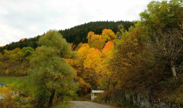 Gümüşhane'nin Torul ilçesindeki Zigana Dağı'nın yamaçlarına kurulu olan ve tarihi İpek Yolu güzergahında yer alan Zigana köyü, sonbaharın gelmesiyle birlikte adeta bir renk tuvaline dönüştü. Trabzon'dan Gümüşhane'ye doğru yola çıkan Mahmut ve Hande Bayrak çifti ise, bu manzarayı görebilmek için Zigana Tüneli yerine virajlı tarihi Zigana yolunu tercih etti.