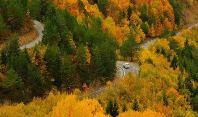 Gümüşhane'nin Torul ilçesindeki Zigana Dağı'nın yamaçlarına kurulu olan ve tarihi İpek Yolu güzergahında yer alan Zigana köyü, sonbaharın gelmesiyle birlikte adeta bir renk tuvaline dönüştü. Trabzon'dan Gümüşhane'ye doğru yola çıkan Mahmut ve Hande Bayrak çifti ise, bu manzarayı görebilmek için Zigana Tüneli yerine virajlı tarihi Zigana yolunu tercih etti.Sarının en sıcak tonları, kırmızının en cüretkar dokunuşları ve yeşilin vedaya hazırlanan hüznü, tarihi İpek Yolu güzergahını kullananları masalsı bir yolculuğa çıkarıyor. Yeni Zigana Tüneli'nin sunduğu hız ve konfora rağmen doğanın bu eşsiz şölenini kaçırmak istemeyenler, rotalarını bilinçli olarak tarihi yola çeviriyor. Yüzyıllar boyunca kervanların ve yolcuların zorlu ama bir o kadar da görkemli geçiş noktası olan tarihi İpek Yolu, bugünlerde Gümüşhane'nin Zigana köyü eteklerinde doğa tutkunlarını ve fotoğrafçıları ağırlıyor. Köy, yeni tünelin gölgesinde kalsa da sunduğu otantik deneyim ve görsel şölenle özellikle sonbahar aylarında alternatif bir turizm rotası olarak yeniden keşfediliyor. Trabzon'dan Gümüşhane'ye doğru yola çıkan Mahmut ve Hande Bayrak çifti de, modern ulaşımın cazibesini bir kenara bırakarak, sırf doğanın renk cümbüşüne tanıklık etmek için virajlı tarihi Zigana yolunu tercih etti."Sırf ağaçları, doğanın yeşilini, renkleri görebilmek için Zigana Tüneli'ni kullanmadık"Yol kenarında verdikleri molada manzaraya hayran kalan Mahmut Bayrak, "Manzara için bu yola geldik. Zigana Tüneli'ni bilerek kullanmadık. Sırf ağaçları, doğanın yeşilini, renkleri görebilmek için bu taraftan geldik. Karadeniz'de yeşil her zaman var ama bu doğayı senenin sadece belli zamanlarında görebiliyoruz. Biz de bu dönemi yakalamak istedik" dedi.Her yıl bu mevsimde Gümüşhane'nin dağlarını ziyaret ettiğini belirten Mahmut Bayrak, eşi Hande Bayrak'a da bu sevgiyi aşıladığını dile getirerek, "Ben dağları severim, her yıl bu dönemde gelirim. Eşimi de iki yıldır getiriyorum. Önceden dağları hiç sevmezdi ama artık o da sevmeye başladı. Hele ki bu manzarayı görünce" dedi.Bayrak, tarihi İpek Yolu'nu bu amaçla ilk kez kullandıklarını ancak gördükleri güzellik karşısında hayran kaldıklarını belirterek, "Bundan sonra her mevsim buradan geçeceğiz" diye konuştu.Eşi Hande Bayrak ise gördüğü manzarayı, "Harika, çok güzel. Eşsiz bir renk cümbüşü var; kırmızı, turuncu, yeşil, hepsi bir arada" diyerek özetledi.