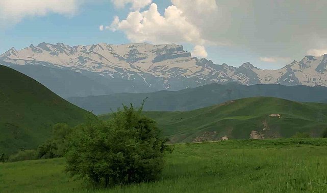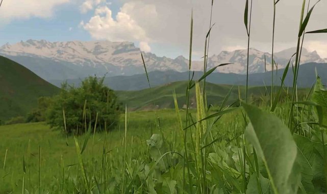 Hakkari'nin Yüksekova ilçesinde zirvesi karla kaplı olan Cilo Dağları, baharda güzelliğiyle hayran bırakıyor.Her sene olduğu gibi 12 ay boyunca Cilo'nun zirvesinde bitmeyen karlar yerini korumaya devam ediyor. Bu sene yağışların fazla olmasıyla adeta Karadeniz havasının yaşandığı Yüksekova ilçesinde doğa yemyeşil hale gelirken, zirvesi karla kaplı Cilo Dağları da güzelliğiyle mest ediyor.Bölgenin güzelliklerini kayıt altına alan Ali Yiğit, "Yüksekova bahar ve yaz aylarında bir başka güzel ama bugünlerde yağışlar ilçeyi rengarenk boyadı. Biz de o anları kayıt altına aldık" dedi.