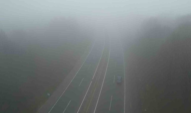 Zonguldak-Ereğli karayolunun yüksek kesimlerinde etkili olan sis nedeniyle görüş mesafesi yer yer 10 metreye kadar düştü. Karayolundaki sis manzarası dron ile havadan görüntülendi.Zonguldak genelinde etkili olan yağışlı havanın ardından yüksek kesimlerde sis yoğunluğunu artırdı. Termometrelerin 8 dereceyi gösterdiği bölgede, Zonguldak ile Ereğli ilçesini birbirine bağlayan karayolunun yüksek rakımlı mevkilerinde sis nedeniyle görüş mesafesi zaman zaman 10 metreye kadar düştü. Güzergahı kullanan sürücüler, görüşün azalması nedeniyle zor anlar yaşarken, hızlarını düşürüp sis farlarını yakarak kontrollü bir şekilde ilerledi.Karayolunun ve çevresini kaplayan yoğun sis tabakası, dron ile havadan görüntülendi.