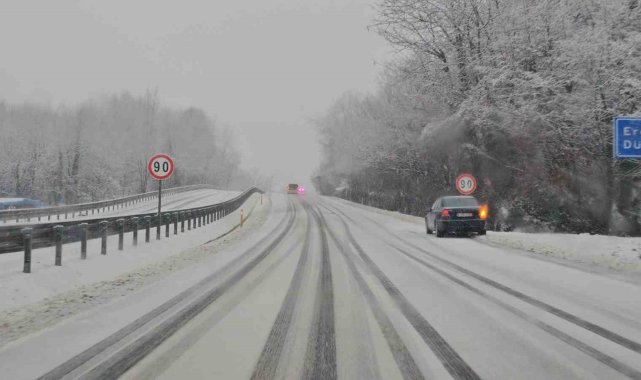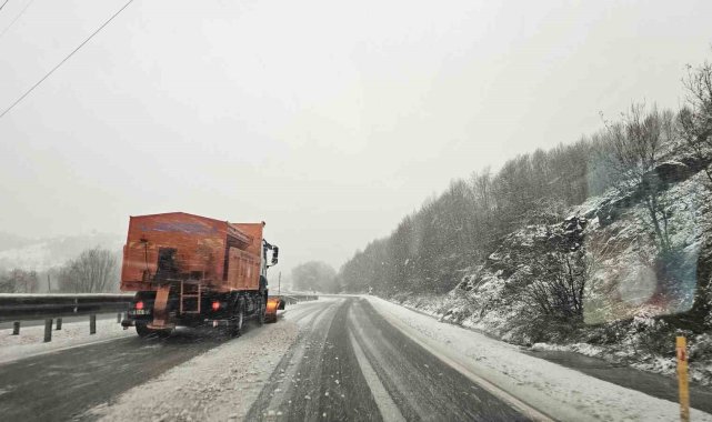 Zonguldak'ın yüksek kesimlerinde sabah saatlerinden itibaren devam eden kar yağışı etkisini sürdürüyor. Ereğli istikametinde ise karayolları ekipleri karla mücadele çalışmalarını aralıksız sürdürüyor.Meteoroloji Genel Müdürlüğü'nün uyarılarının ardından kentin yüksek kesimlerinde kar yağışı etkisini sürdürüyor. Ereğli istikametinde trafik ekipleri yol denetimlerini sürdürürken Karayolları Şube Müdürlüğü ekipleri de iş makineleri ile karla mücadelesini sürdürdü. Ekipler kar küremenin yanı sıra tuzlama çalışmalarına devam ediyor. Trafik ekipleri denetimlerde kış lastiği olmayan sürücülerin geçişine ise izin vermedi.