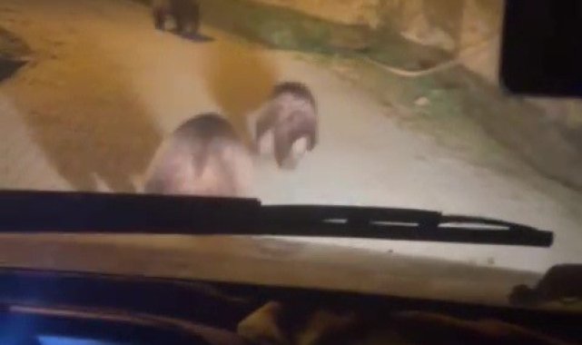 Zonguldak'ın Devrek ilçesine bağlı Akçabey köyüne inen ayılar kameralara yansıdı.
