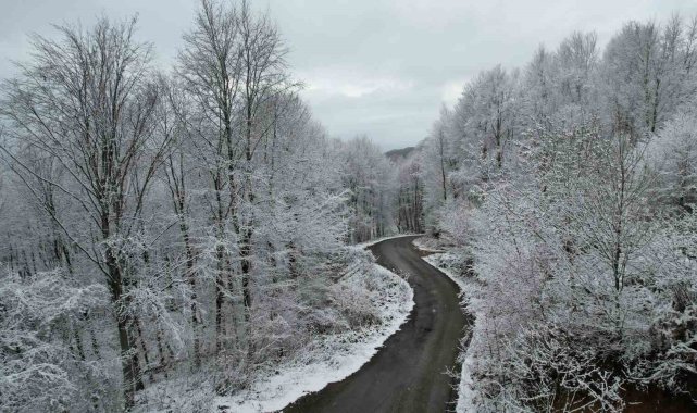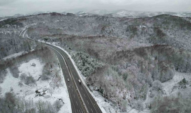 Zonguldak'ta kuvvetli kar uyarısının ardından gece saatlerinden itibaren etkili olan kar yağışı yüksek kesimlerde kartpostallık manzaralar oluşturdu. Havadan görüntülenen Zonguldak-Ereğli kara yolunda gece saatlerinden itibaren tuzlama çalışmaları yapıldı.Zonguldak Valiliğinin kuvvetli kar yağışına bağlı olarak buzlanma ve don uyarılarının ardından kar yağışı yüksek kesimlerde etkisini gösterdi. Şehir merkezinde ise karla karışık yağmur etkili olurken Zonguldak-Ereğli kara yolundaki kar manzaraları adeta kartpostallık görüntüler oluşturdu.Kara yolunda gece boyunca tuzlama çalışmaları yapıldı. Kar manzaraları dron ile havadan görüntülenirken kar yağışının aralıklarla etkisini sürdürmesi bekleniyor. Zonguldak-İstanbul, Zonguldak-Ankara kara yolunda ise kar sebebiyle herhangi bir aksama yaşanmadığı öğrenildi.