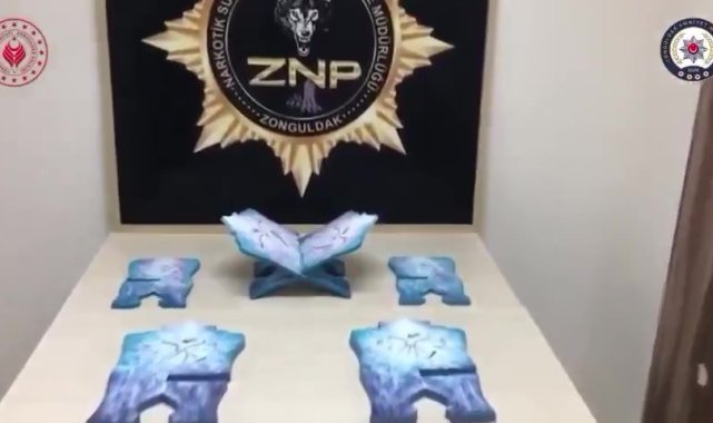 Zonguldak Emniyet Müdürlüğü ekiplerince düzenlenen narkotik operasyonda, rahle görünümünde preslenmiş metamfetamin maddesi ele geçirildi. Operasyonda toplam 14 kilo 200 gram uyuşturucu maddeye el konulurken, bir kişi tutuklandı.