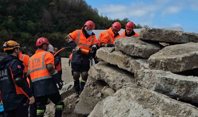 Zonguldak'ta 23 kurumdan 180 personelin katılımıyla sel ve taşkın tatbikatı gerçekleştirildi. Senaryo gereği enkaz altında kalan yaralılar TTK ekiplerince kurtarılırken jandarma ekipleri derede ceset aradı. İtfaiye ekipleri çöken binadan yaralı kurtarırken denizde ve karada gerçekleştirilen tatbikat izleyenlerden tam not aldı.Kozlu ilçesi Ilıksu mevkisinde, 28 Nisan 2026 tarihinde sel ve taşkın tatbikatı düzenlendi. İçişleri Bakanlığı Afet ve Acil Durum Yönetimi Başkanlığı'nca (AFAD) planlanan tatbikata, 23 kamu kurumu, sivil toplum kuruluşu ve AFAD Gönüllülerinden oluşan yaklaşık 180 personel ile 50 araç katıldı.Tatbikatın, sel ve taşkın afetlerine yönelik müdahale kapasitesinin artırılması, görevli personelin bilgi ve uygulama becerilerinin geliştirilmesi, Türkiye Afet Müdahale Planı (TAMP) Afet Grupları ile sivil toplum kuruluşları arasındaki koordinasyonun yükseltilmesi amacıyla icra edildiği belirtildi. Tatbikatla müdahale süreçlerinin hızlandırılması, kullanılan araç ve ekipmanların sahadaki etkinliğinin test edilmesi ve mevcut afet müdahale planlarının uygulanabilirliğinin değerlendirilmesi hedeflendi.AFAD İl Müdürü Ali Kartal, bölgenin sel ve su baskınına bağlı heyelan afetlerine maruz kaldığını ifade ederek, "Bölgemiz özellikle sel, su baskını ve bunlara bağlı heyelan afetleri dolayısıyla sık sık bu afetlere maruz kalmaktadır. Bu yılki tatbikatımızı da en çok karşılaştığımız olay olan sel, su baskınları afetleri üzerinden gerçekleştiriyoruz. Bu gün sahada 23 kurum, kuruluş, STK ve gönüllümüzle bir aradayız. Her bir kurum özellikle operasyon kurumları sahada zaten günlük yaptığı rutin çalışmaları sürekli yapıyorlar. Tecrübeleri var ama birkaç kurum bir araya geldiğinde bunu yönetmek daha zor oluyor. İşte bunu tatbikatlarla böyle hazırlıklarla yapıyoruz. Afet öncesi hazırlık, afet sırası müdahale, afet sonrası iyileştirme çalışmaları bir bütün halinde yürütülüyor" dedi.Tatbikat 6 istasyonda gerçekleştirildiSel ve taşkın senaryosu kapsamında oluşturulan 6 ayrı istasyonda uygulamalı operasyonlar yürütüldü. İstasyonlarda sırasıyla, itfaiye merdiveni ile yüksek katlardan kurtarma, enkazda arama ve kurtarma, dere üzerinde havai hat ile kurtarma, dere içindeki araçtan kurtarma, sualtı ve su üstü arama-kurtarma ile motopomp kullanılarak sel suyu ve çamur tahliyesi faaliyetleri yapıldı. Tatbikat süresince ekiplerin müşterek çalışma kabiliyeti, komuta-kontrol süreçleri ve olay yeri yönetimi gözlemlenerek değerlendirildi.Tatbikata Zonguldak Vali Yardımcısı Şenol Levent Elmacıoğlu, kurum amirleri ve ilgili personel katıldı.